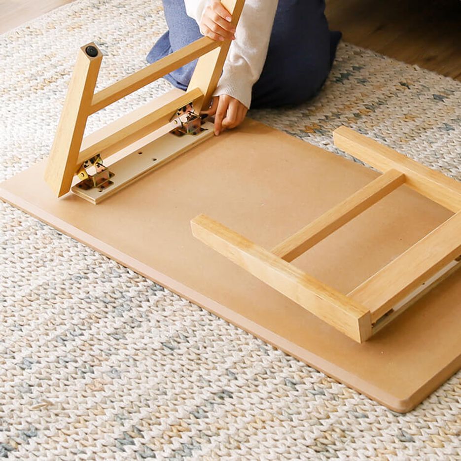 折りたたみテーブルのメリットとしてまず浮かぶのが、「使わないときにはしまっておける」という点。1人暮らしなど狭い部屋で、筋トレやストレッチをするときにテーブルをどかしたいという方には特におすすめです!